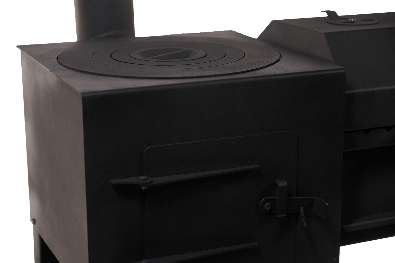 Вся конструкция изготовлена из конструкционной стали Ст.3СП 5 и выкрашена несколькими слоями термостойкой черной краски, что делает данное устройство надежным и долговечным. Масса изделия нетто составляет 69 кг.